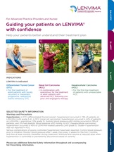 A brochure for Advanced Practice Providers (APPs) and nurses to assist in guiding patients on LENVIMA, helping them better understand their treatment plan. Features key clinical information by indication, including efficacy, safety, dosing, treatment management, and more.
