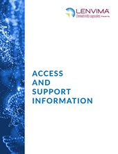 The brochure summarizes access and support services for LENVIMA, including specialty pharmacy distribution, financial assistance, and patient support programs.